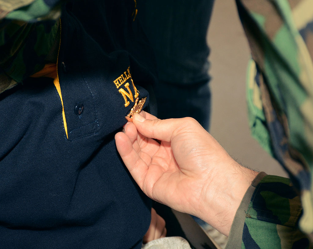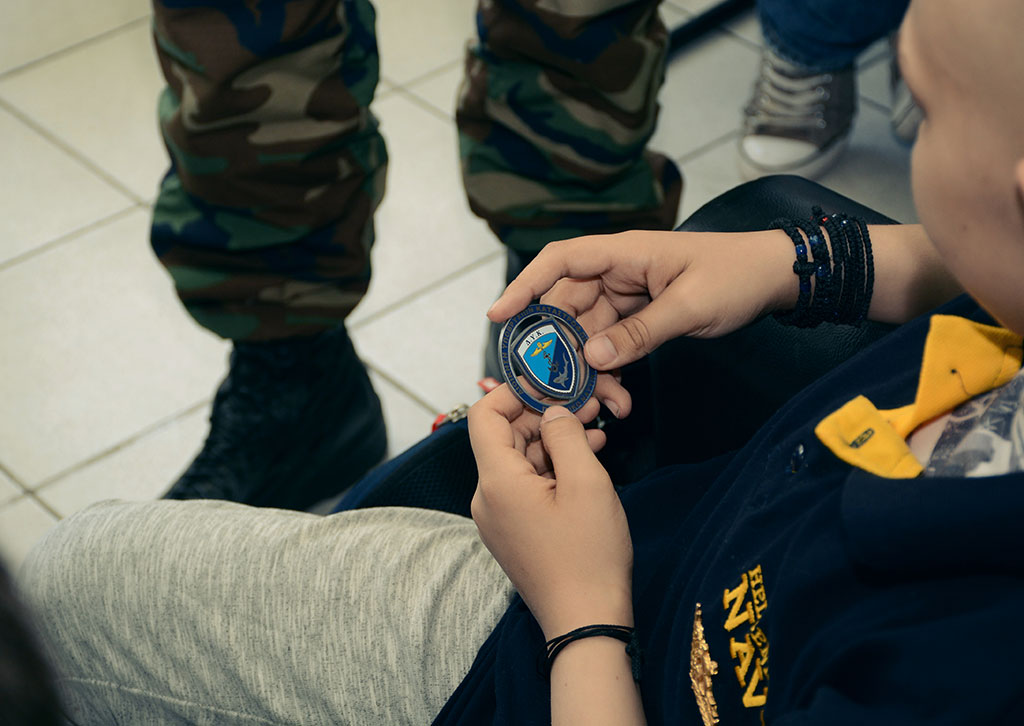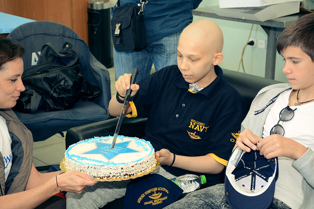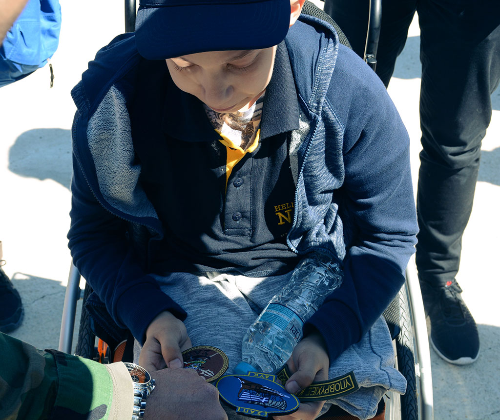 Ο Διοικητής της Μονάδας, Πλοίαρχος Παναγιώτης Νικολαρέας ΠΝ υποδέχτηκε τον 13χρονο Γιώργο, ο οποίος συνοδευόταν από την οικογένειά του, φίλους και εθελοντές του Οργανισμού.
