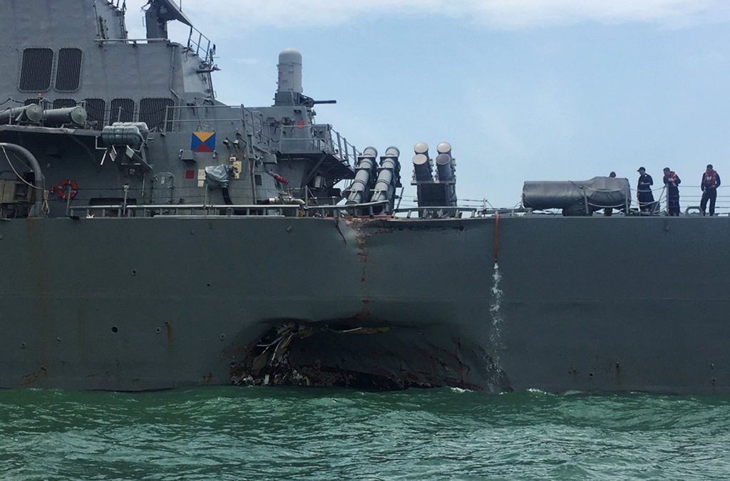 Το USS John S. McCain συγκρούστηκε με πετρελαιοφόρο ελληνικών συμφερόντων ανοικτά της Σιγκαπούρης τον Αύγουστο, με αποτέλεσμα να σκοτωθούν 10 ναυτικοί και να τραυματιστούν άλλοι πέντε.