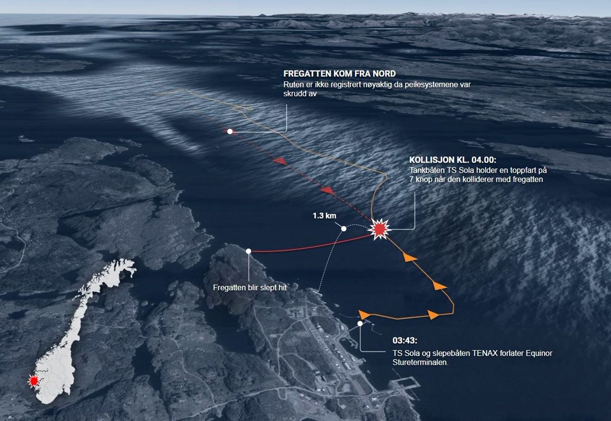 Σύμφωνα με τον Κτζέτιλ Στόρμακ, συντάκτη του AldriMer.no, το ελληνόκτητο τάνκερ επικοινώνησε με τη φρεγάτα για να ρωτήσει εάν διέθετε σχέδιο για να περάσει με ασφάλεια, καθώς βρισκόταν σε πορεία σύγκρουσης. «Η απάντηση ήταν “Έχουμε τα πάντα υπό έλεγχο”», ανέφερε στο BBC.