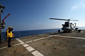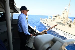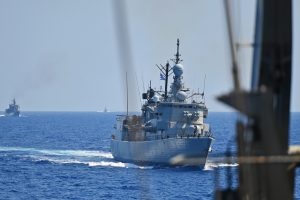 Ο υπουργός Εθνικής Άμυνας, Νίκος Δένδιας, που παρακολούθησε την άσκηση από τη Φρεγάτα ΑΔΡΙΑΣ και σχολίασε:
