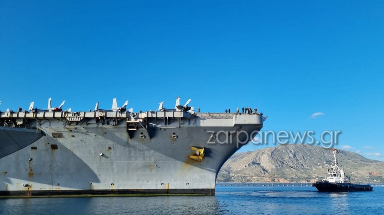 Το πρωί της Κυριακής των Βαΐων (28/4), έφτασε στη Σούδα το πυρηνοκίνητο αεροπλανοφόρο «USS Dwight D. Eisenhower», με πάνω από 5.000 άτομα πλήρωμα, που θα παραμείνουν στα Χανιά μέχρι και τις 2 Μαΐου, οπότε και το πλοίο των ΗΠΑ θα αναχωρήσει.