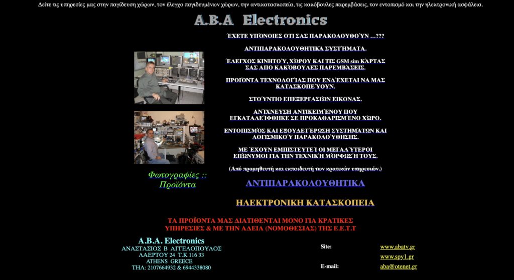 Ως επικεφαλής της ABA Electronics, ο Αγγελόπουλος κυκλοφορεί και ως ειδικός στην «ηλεκτρονική κατασκοπεία», όπως αναφέρει και το προφίλ της εταιρείας του, δηλαδή ειδικός στις τηλεφωνικές και λοιπές παρακολουθήσεις.