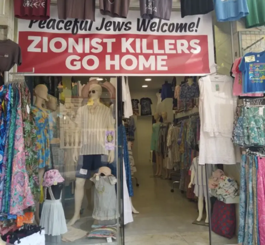Ο άνδρας κατέβασε πανό από την πρόσοψη καταστήματος, το οποίο έφερε μήνυμα κατά του σιωνισμού.