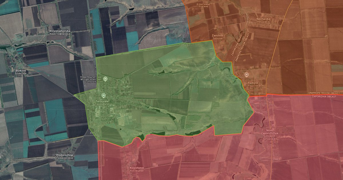 #Ukraine #Zaporizhzhia Die russische Armee hat offenbar die Kleinstadt Ternuvate (ehemals 1300 Einwohner) eingenommen. Der Ort liegt nur 12 Kilometer vom strategisch wichtigen Verkehrskreuz Pokrowske entfernt. In der Steppenlandschaft befinden sich hier besonders schützenwerte… pic.twitter.com/7OusOJ6geN