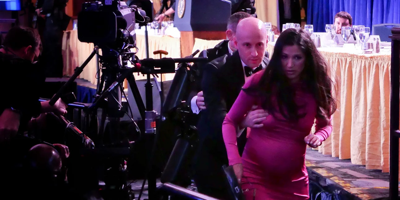 Κατά τη διάρκεια εκκένωσης της αίθουσας στο Washington Hilton μετά την επίθεση του ηλικίας 31 ετών Κόουλ Τόμας Άλεν, εικόνες που κυκλοφόρησαν στα μέσα κοινωνικής δικτύωσης πυροδότησαν κατηγορίες ότι ο σύμβουλος Εσωτερικής Ασφάλειας του Τραμπ, Στίβεν Μίλερ, δεν φάνηκε γενναίος ως όφειλε παρουσία της γυναίκας και μητέρας των παιδιων του.