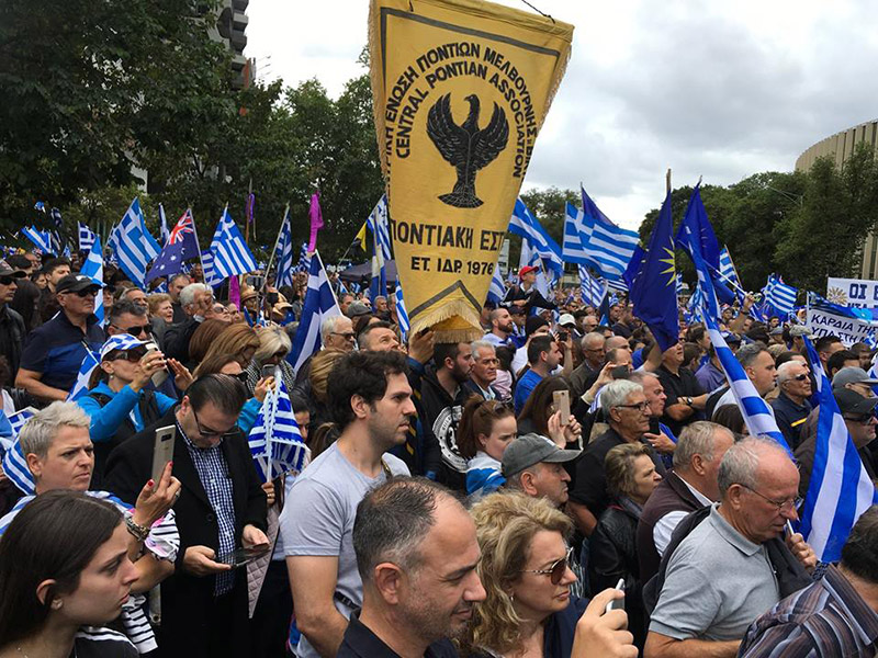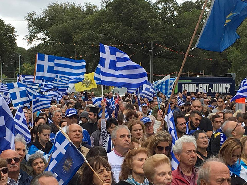 Η ελληνική ομογένεια στην Αυστραλία διαδήλωσε έξω από το Ελληνικό Προξενείο της Μελβούρνης φωνάζοντας «Ελλάς-Ελλάς Μακεδονία» ενώ στα χέρια τους κρατούσαν ελληνικές σημαίες διαμαρτυρόμενοι για την ονομασία των Σκοπίων.