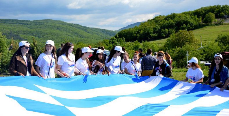 Η φωτογραφία είναι από παλιότερη εκδήλωση στο χωριό Λάκοι στην Κριμαία, με τους συμμετέχοντες να κρατούν μια μεγάλη ελληνική σημαία. Οι ναζί είχαν κάψει ζωντανούς τους Έλληνες κατοίκους του μαρτυρικού χωριού, λόγω των σχέσεων που είχαν με τους αντάρτες. (φωτο: pontos-news.gr)
