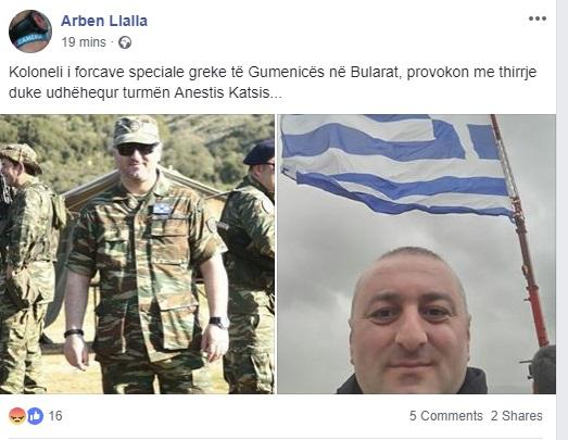 Σύμφωνα με τον Llalla, ο Έλληνας πρώην ανώτερος αξιωματικός τράβηξε φωτογραφία από την περιοχή με την ελληνική σημαία και την έστειλε σε μέσα κοινωνικής δικτύωσης αναφέροντας δήθεν αντι-Αλβανικά συνθήματα.