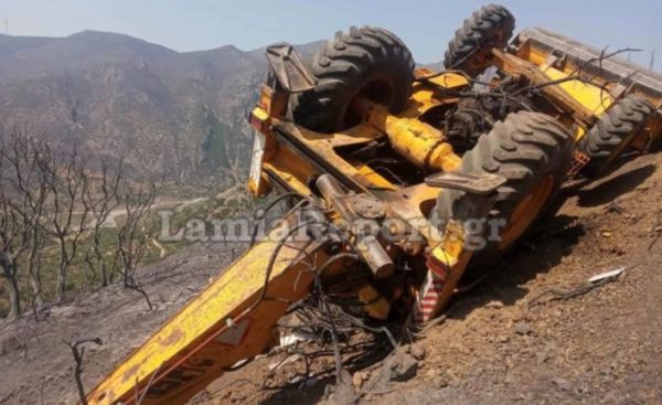 Το συμβάν σημειώθηκε το πρωί της Δευτέρας στην Ερατεινή Φωκίδας, με ένα γκρέιντερ να πέφτει σε γκρεμό την ώρα που πραγματοποιούσε εργασίες στην ευρύτερη περιοχή που μαίνεται η πυρκαγιά.
