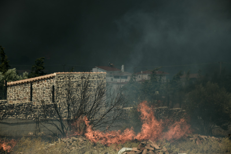 Ο δήμαρχος Σαρωνικού, Πέτρος Φιλίππου,επιβεβαίωσε πως έχουν καεί σπίτια, ωστόσο, επειδή είναι πυκνός ο καπνός από τη φωτιά, δεν μπορεί ακόμα να επιβεβαιώσει τον αριθμό, ενώ ανέφερε πως έχουν εκκενωθεί οι οικισμοί Φέριζα και Ολυμπος.