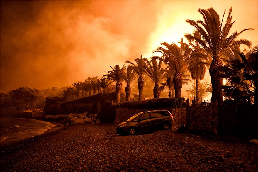 Η πυρκαγιά είναι τόσο μεγάλη που καπνός είναι ορατός από το λεκανοπέδιο της Αττικής ενώ στάχτη έχει φτάσει και στην Αθήνα.
