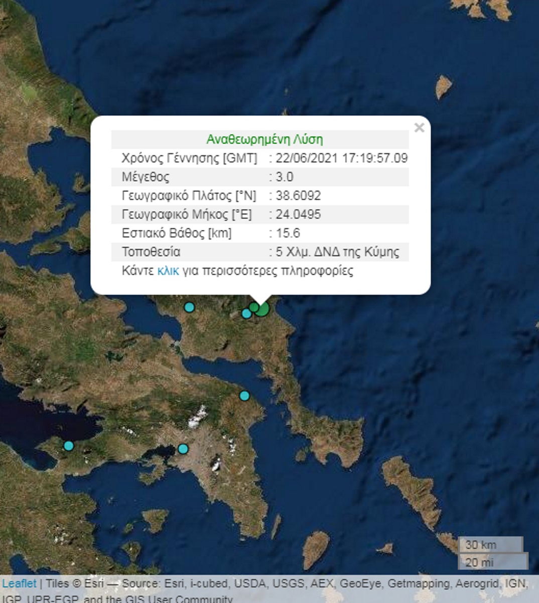Ο σεισμός έχει μέγεθος 3 βαθμούς της κλίμακας Ρίχτερ σε απόσταση 5 χιλιομέτρων δυτικά – νοτιοδυτικά της Κύμης.