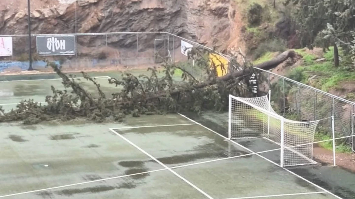 Τα δύο δέντρα κατέρρευσαν με διαφορά λίγων λεπτών - Στο γήπεδο δεν υπήρχαν άτομα εκείνη την ώρα και δεν υπήρξε κάποιος τραυματισμός
