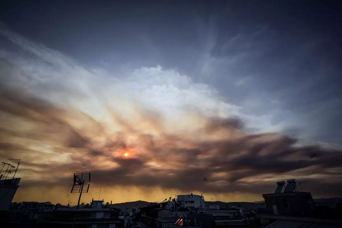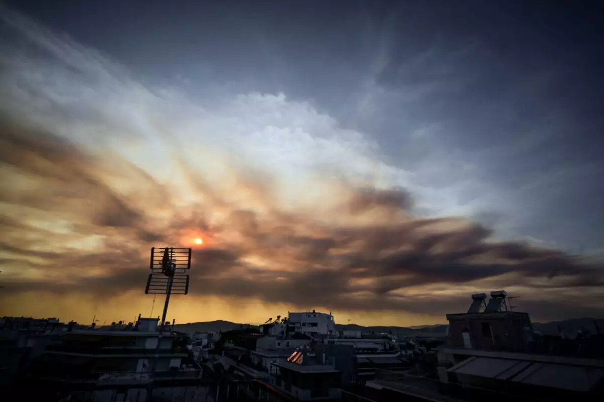 Ο καπνός από την πυρκαγιά που ξέσπασε στην Εύβοια κάλυψε και τον ουρανό της Αττικής. Η φωτιά ξέσπασε σε αγροτοδασική έκταση στην περιοχή Πισσώνας του δήμου Διρφύων-Μεσσαπίων Ευβοίας και λόγω της αδυναμίας της Πολιτικής Προστασίας να την κατασβέσει εξαπλώθηκε γρήγορα.