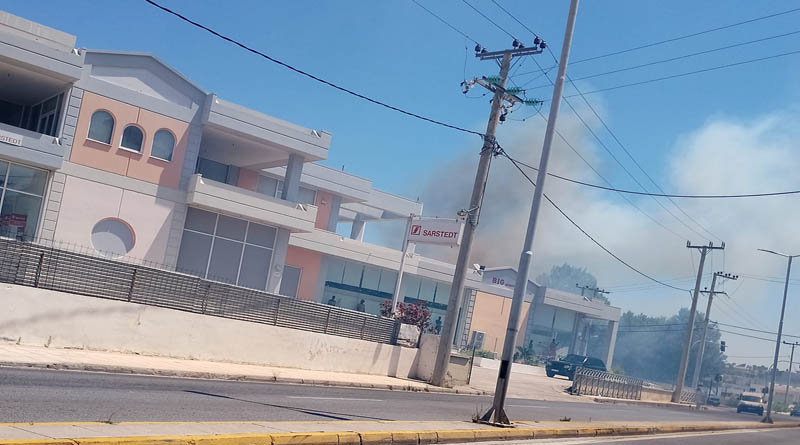 Η φωτιά έχει ξεσπάσει κοντά στο κοιμητήριο των Σπάτων.