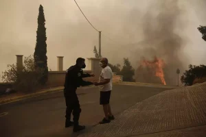 Εκκενώνονται τέσσερις οικισμοί και ένα γηροκομείο με 300 τρόφιμους από τη Βούλα και οι εικόνες από το σημείο είναι συγκλονιστικές, την ώρα που οι κάτοικοι προσπαθούν να σώσουν τα σπίτια τους ενώ άλλοι αναγκάζονται να τα αφήσουν πίσω.