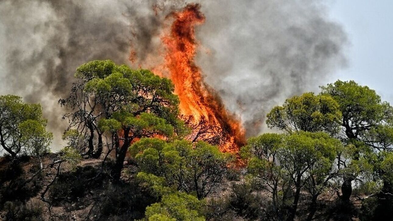 Οι φλόγες έχουν τυλίξει τα δέντρα σε μεγάλο ύψος με τους πυροσβέστες να δίνουν «μάχη» για να καταφέρουν να ελέγξουν την πυρκαγιά.