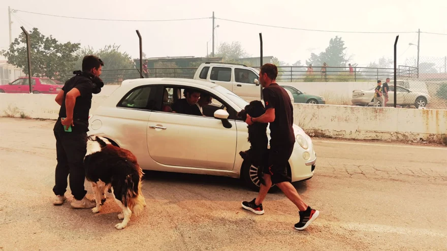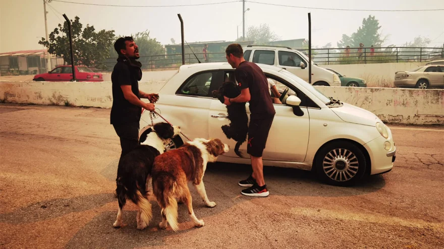 Εικόνες από τον Άγιο Ιωάννη Ρώσο στην περιοχή που εκκενώνεται δείχνει τους πολίτες να προσπαθούν να σώσουν ό,τι σώζεται και κυρίως τα κατοικίδιά τους.