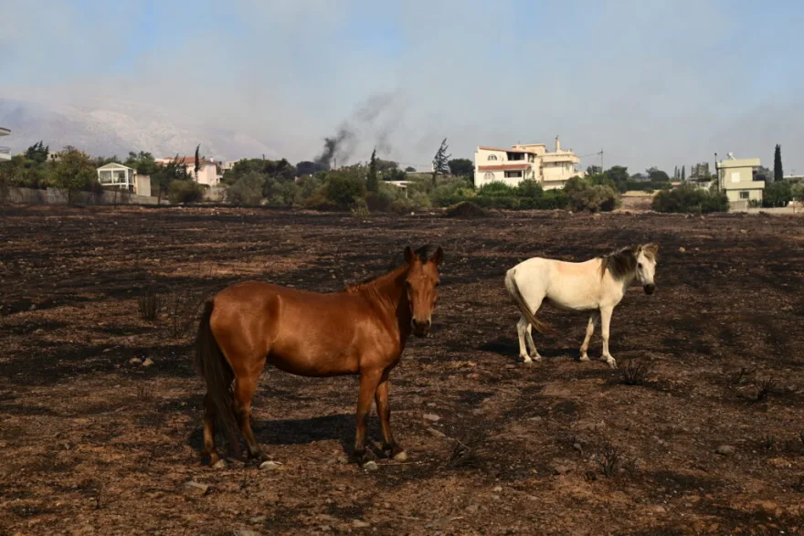 Φωτιά στον Κουβαρά: Επιχείρηση διάσωσης εγκλωβισμένων αλόγων (φωτό)