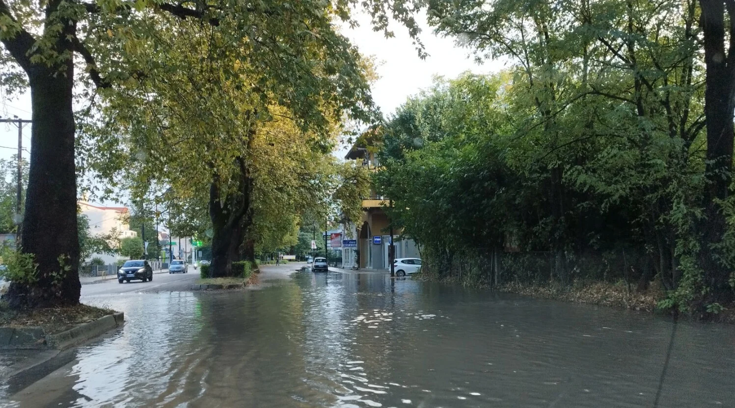 Μέσα σε λίγα λεπτά δρόμοι μετατράπηκαν σε ποτάμια, ενώ λόγω του όγκου του νερού που έπεσε η κυκλοφορία των οχημάτων γίνεται με ιδιαίτερη προσοχή.