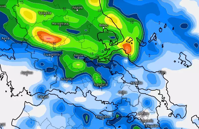 Ο χάρτης με την τελευταία πρόγνωση για την περιοχή της Φθιώτιδας (ECMWF):