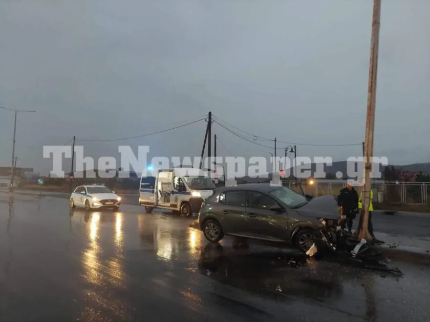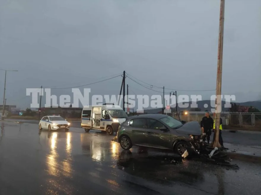 Κακοκαιρία: Σοβαρό τροχαίο στο Βόλο – Ι.Χ «καρφώθηκε» σε κολώνα (φωτό)