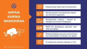 Για περισσότερες πληροφορίες και οδηγίες αυτοπροστασίας από τα έντονα καιρικά φαινόμενα, οι πολίτες μπορούν να επισκεφθούν την ιστοσελίδα της Γενικής Γραμματείας Πολιτικής Προστασίας στην ηλεκτρονική διεύθυνση www.civilprotection.gr.