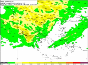 Σύμφωνα με αρμόδιες πηγές, με βάση την πρόγνωση των μετεωρολογικών μοντέλων και την ανάλυση από την ΕΜΥ προκύπτουν τα ακόλουθα συμπεράσματα σε σχέση με την πιθανή εκδήλωση πλημμυρικών φαινομένων κατά το διάστημα Πέμπτη 9/6 έως Δευτέρα 13/6: