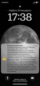 «Προειδοποιητικό μήνυμα για επικίνδυνα καιρικά φαινόμενα (θυελλώδεις άνεμοι) το επόμενο 12ωρο στην περιοχή σας. Περιορίστε τις μετακινήσεις σας στις απολύτως απαραίτητες και ακολουθήστε τις οδηγίες των Αρχών», αναφέρει το μήνυμα του 112 που ήχησε στην Αττική για την κακοκαιρία Bettina.