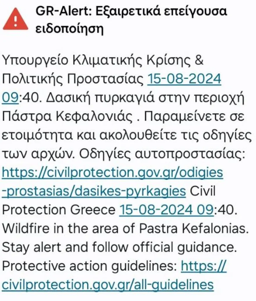 Όσοι βρίσκονται στην περιοχή έλαβαν, μάλιστα, μήνυμα από το 112 για να είναι σε ετοιμότητα.