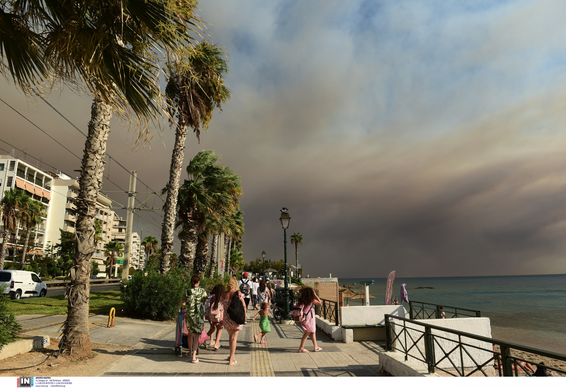 Η παραλία του Φλοίσβου «μαύρισε» από τους καπνούς της πυρκαγιάς στον Βαρνάβα (φωτο)