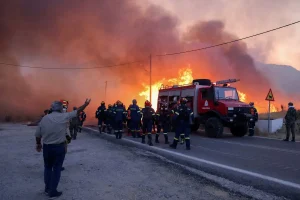Ισχυρές δυνάμεις της πυροσβεστικής δίνουν μάχη με τις φλόγες, χρησιμοποιώντας χερσαία και εναέρια μέσα, ενώ πολλοί εθελοντές συμβάλλουν με σημαντικές προσπάθειες στην προσπάθεια κατάσβεσης των πέντε ενεργών μετώπων.