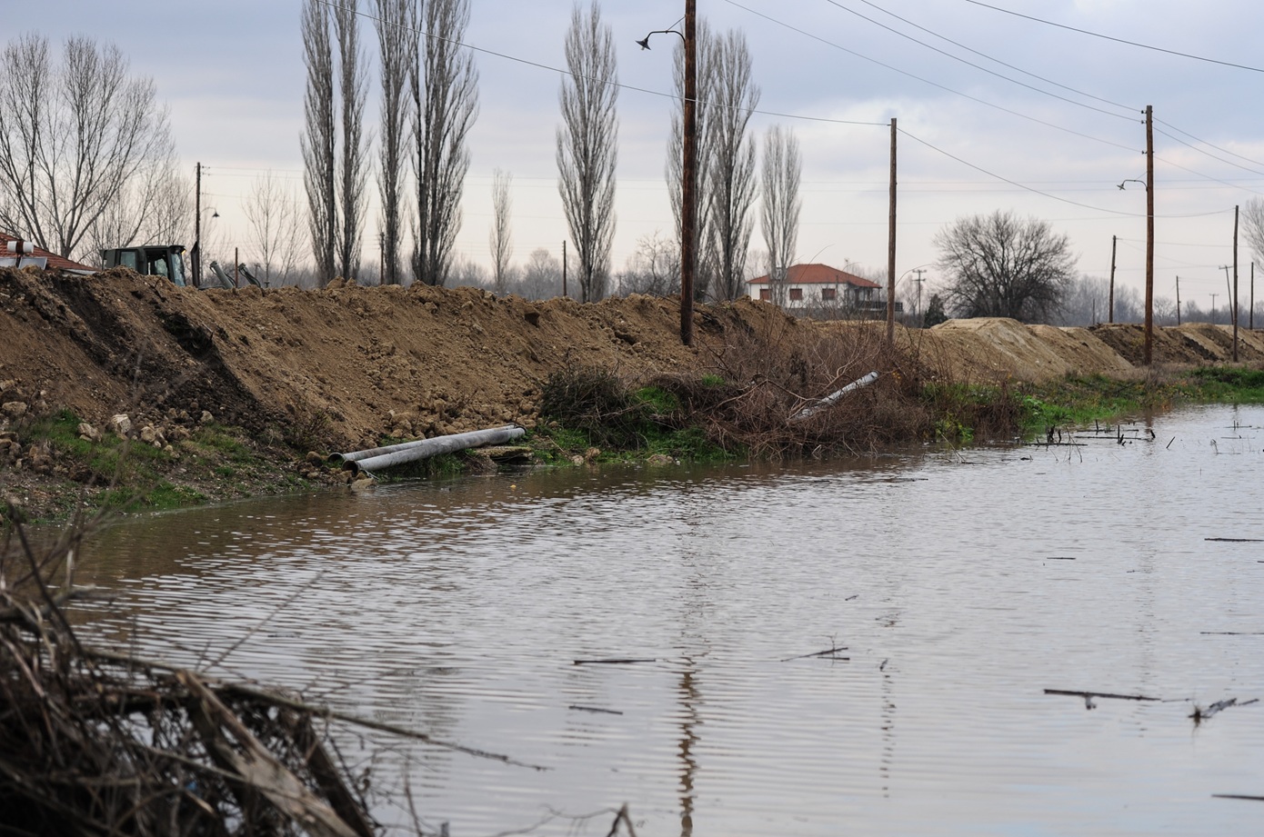 Τα νερά έχουν πλημμυρίσει τον κάμπο και έχουν εισέλθει στον οικισμό μέσω του περιφερειακού δρόμου, φτάνοντας στις πρώτες αυλές των κατοικιών.