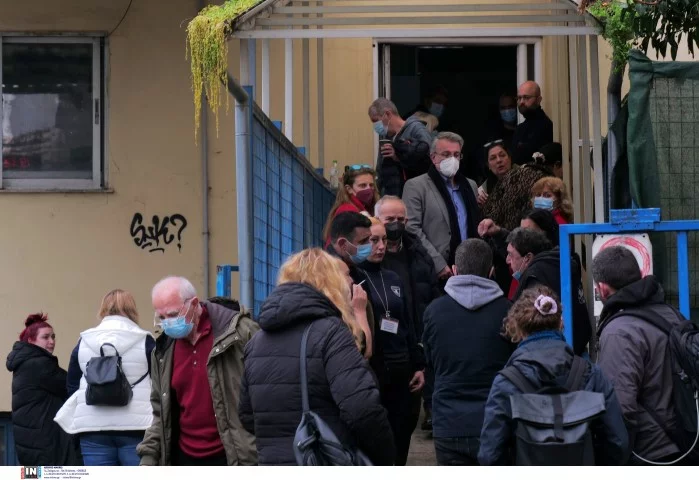 Γονείς και συγγενείς σε συντριβή, αφού έψαξαν εναγωνίως τα παιδιά και τους οικείους τους παντού και δεν τους βρήκαν, περιμένουν στο αμφιθέατρο του Νοσοκομείου Λάρισας για τα διαδικαστικά της εξέτασης DNA.
