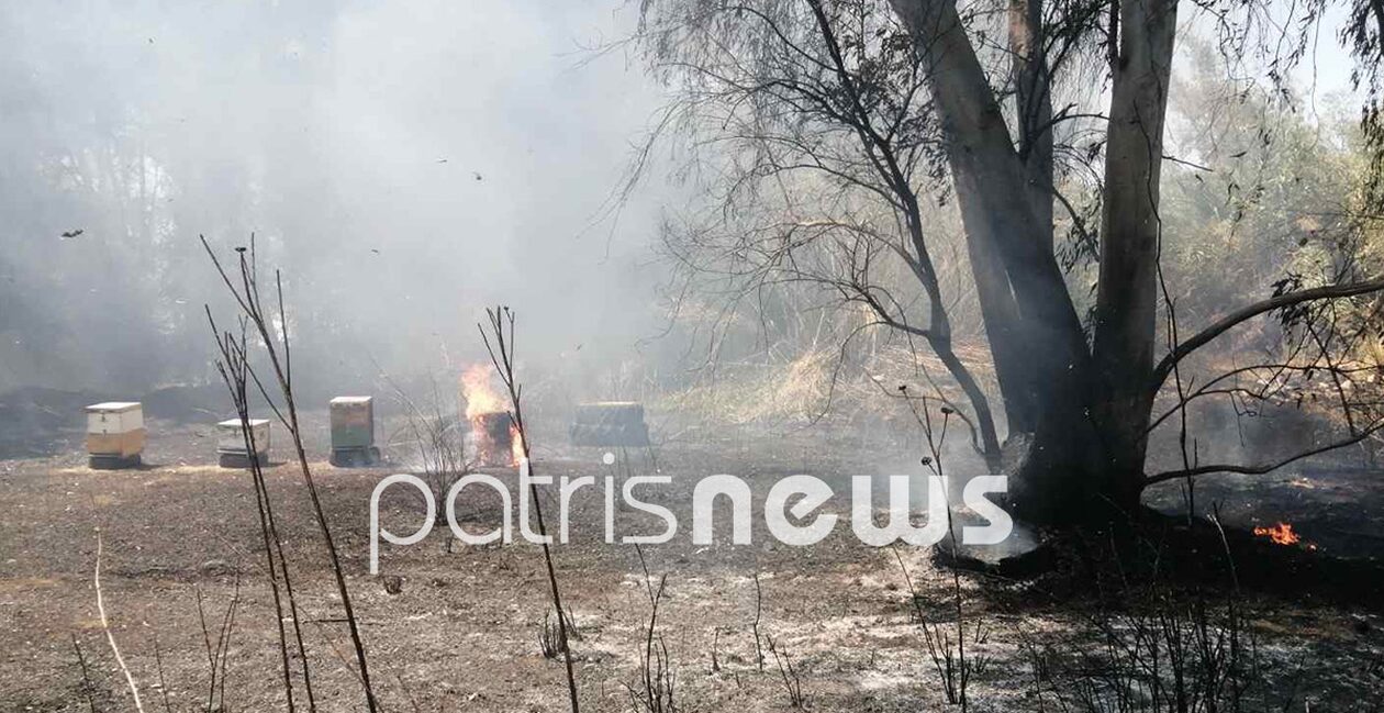 Η ατμόσφαιρα στην περιοχή είναι αποπνικτική, ενώ οι καπνοί έχουν φτάσει μέχρι την Ε.Ο. Πατρών-Πύργου.
