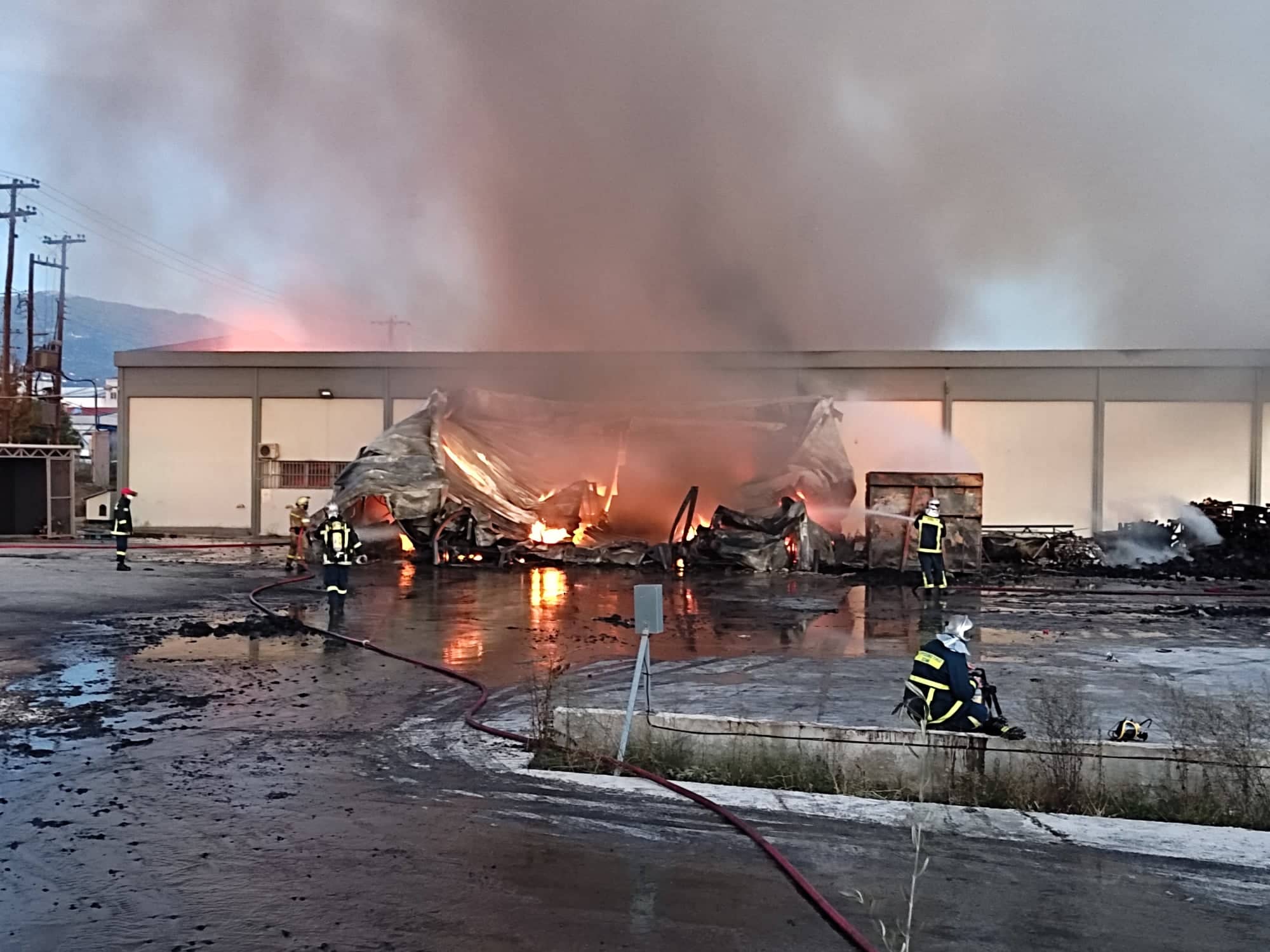 Στις φλόγες τυλίχθηκε το απόγευμα του Σαββάτου εργοστάσιο στην Α’ Βιομηχανική Περιοχή του Βόλου.
