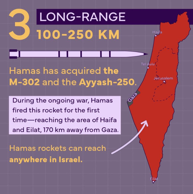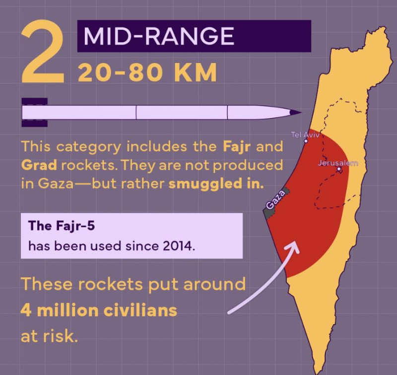 Ο IDF αναλύει τους τρεις τύπους ρουκετών που εκτοξεύει η οργάνωση καθώς και τις απώλειες που μπορούν να προκαλέσουν.