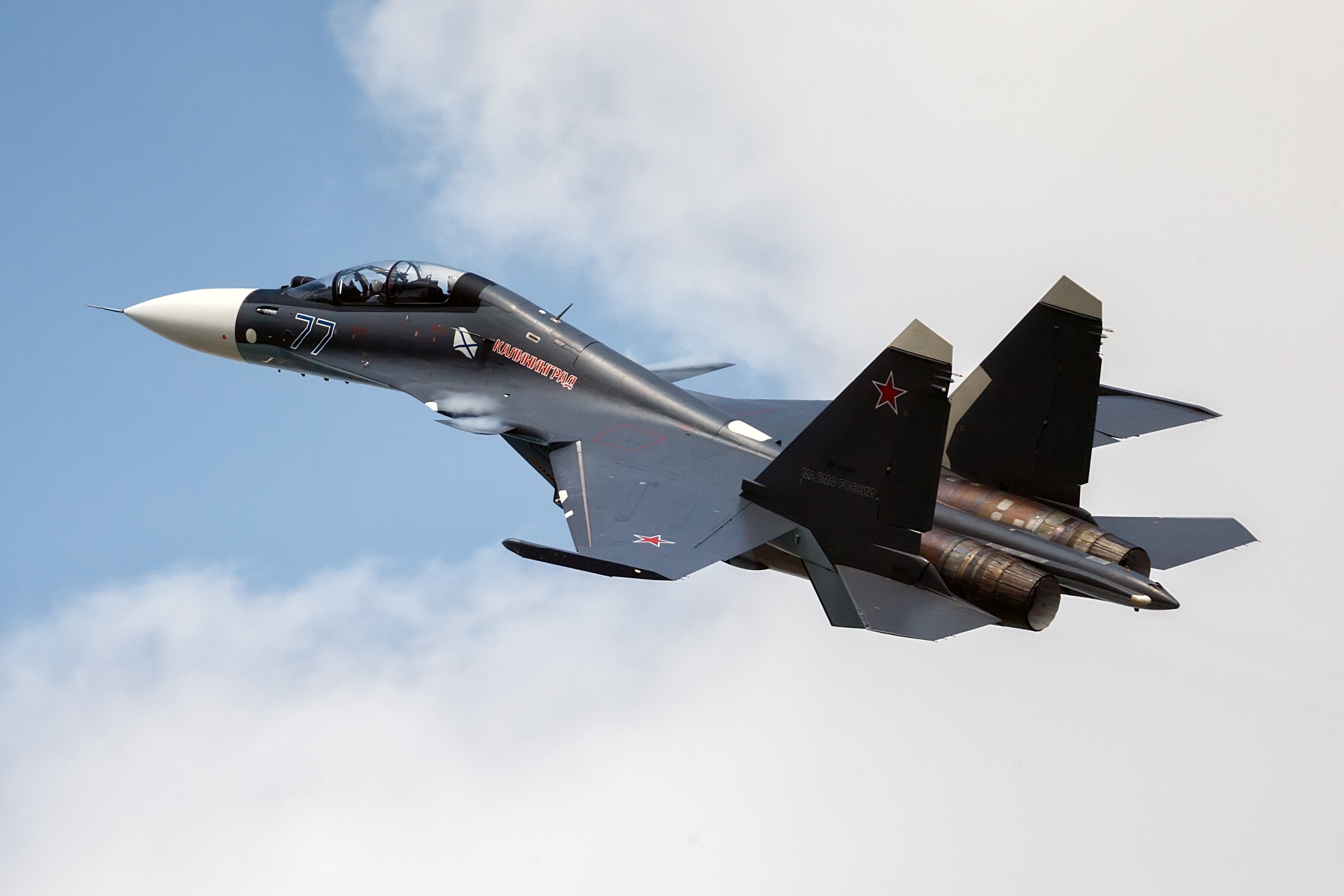 Crews of Tu-22M3 long-range supersonic missile carrier bombers escorted by Su-30SM and Su-27 fighters performed a scheduled flight over the Baltic Sea.