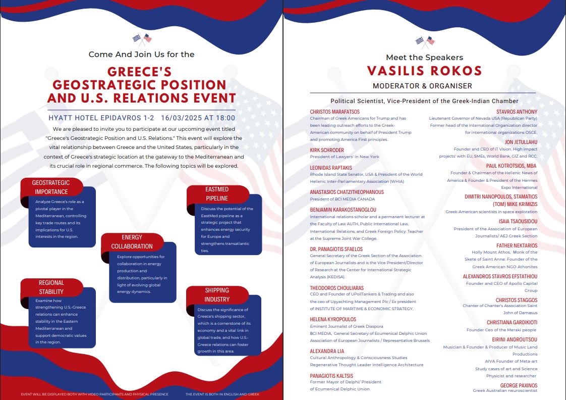 Η παρουσία σας στο γεγονός αυτό θα συμβάλει στην προώθηση του διαλόγου και της συνεργασίας μεταξύ Ελλάδας και Η.Π.Α. Σας περιμένουμε!
