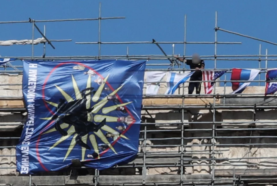 Στα χέρια των Αρχών βρίσκεται ο άνδρας που χθες το μεσημέρι, σκαρφάλωσε στις σκαλωσιές μπροστά από τον Παρθενώνα και κρέμασε σημαίες.