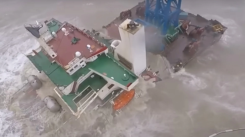 Βίντεο και εικόνες που κυκλοφορούν από την περιοχή της νότιας Κίνας δείχνουν ελικόπτερα να επιχειρούν στο σημείο, ενώ τα ισχυρά κύμα χτυπούν το πλοίο.