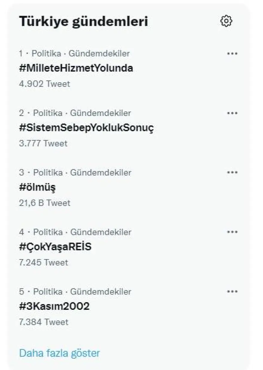 «Κάτω από το προαναφερθέν hashtag εντοπίστηκαν 30 άτομα, τα οποία κρίθηκε ότι μοιράστηκαν παραπληροφόρηση και περιεχόμενο χειραγώγησης, καθώς και περιεχόμενο που προσβάλλει, χλευάζει, προσβάλλει και υβρίζει τον Πρόεδρό μας Ρετζέπ Ταγίπ Ερντογάν και έχουν κινηθεί οι απαραίτητες νομικές διαδικασίες εναντίον τους».