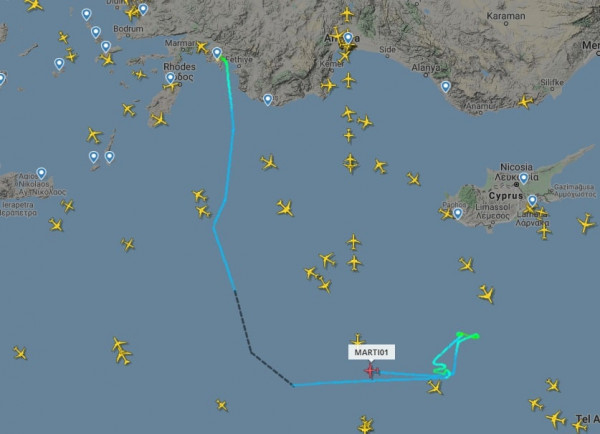 Σε μια προσπάθεια επίδειξης ισχύος, τουρκικό αεροσκάφος ναυτικής συνεργασίας και συλλογής πληροφοριών ATR72 πραγματοποίησε πτήση στα νότια όρια του FIR Λευκωσίας, κοντά στο FIR Καϊρου.