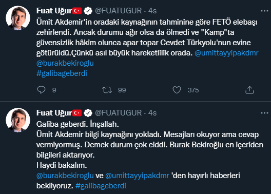 Ο αρθρογράφος της τουρκικής εφημερίδας Fuat Uğur, δημοσίευσε τις αναρτήσεις του Bekiroğlu, σχολιάζοντας το γεγονός στον λογαριασμό του στο Twitter: