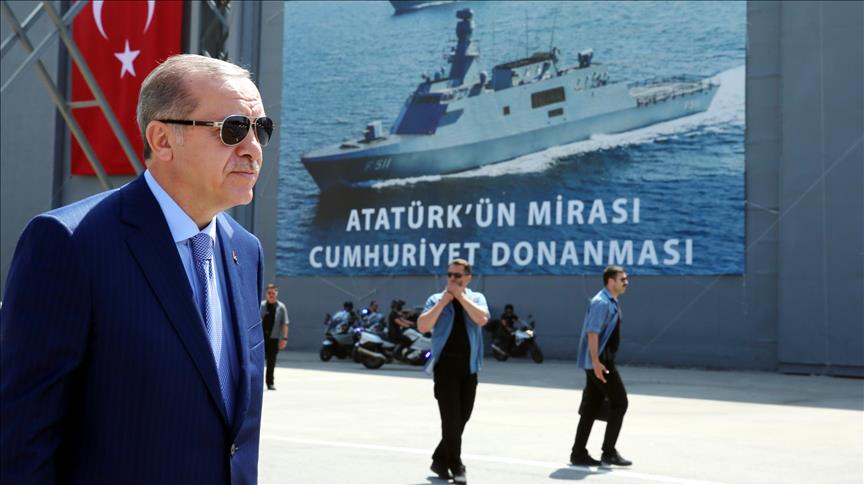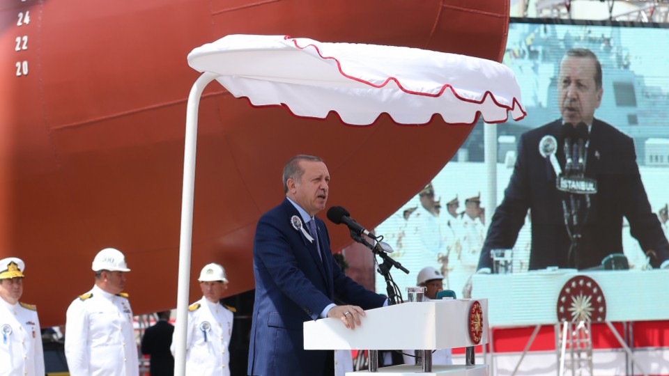 «Πρέπει να κινηθούμε ακόμη γρηγορότερα», είπε ο Ερντογάν. «Είμαστε υπερήφανοι για την ικανότητά μας να κατασκευάζουμε στρατιωτικά πλοία, ειδικά για την κατασκευή υποβρυχίων».