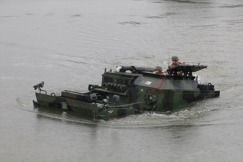 Στην άσκηση βίαιης διάβασης υδάτινου κωλύματος προσημειώθηκε ζεύξη του ποταμού Έβρου με εισβολή τουρκικών τεθωρακισμένων μονάδων στην Δυτική Θράκη.