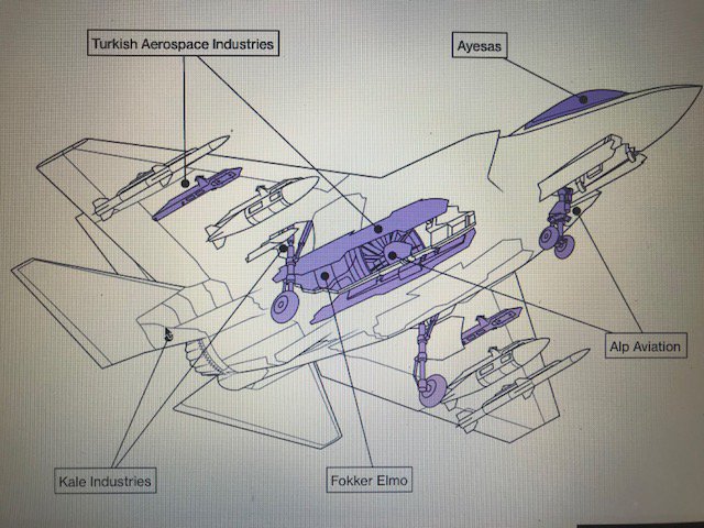 Έτσι οποιαδήποτε ακύρωση της πώλησης του μαχητικού και απόσυρση των τουρκικών εταιρειών από την παραγωγή θα φέρει χάος στην γραμμή παραγωγής του αεροσκάφους».