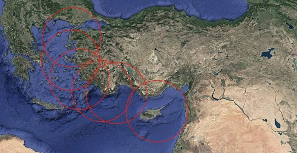Οι Τούρκοι δημοσίευσαν και χαρακτηριστική φωτογραφία με το πως θα “κλειδώσουν” Αιγαίο και Α.Μεσόγειο φτάνοντας μέχρι την Κύπρο με τον τουρκικό “Harpoon” που σχεδίασαν, δημιουργώντας “Ζώη Απαγόρευσης” και αποκτώντας πρωτόγνωρες δυνατότητες ναυτικής κρούσης!