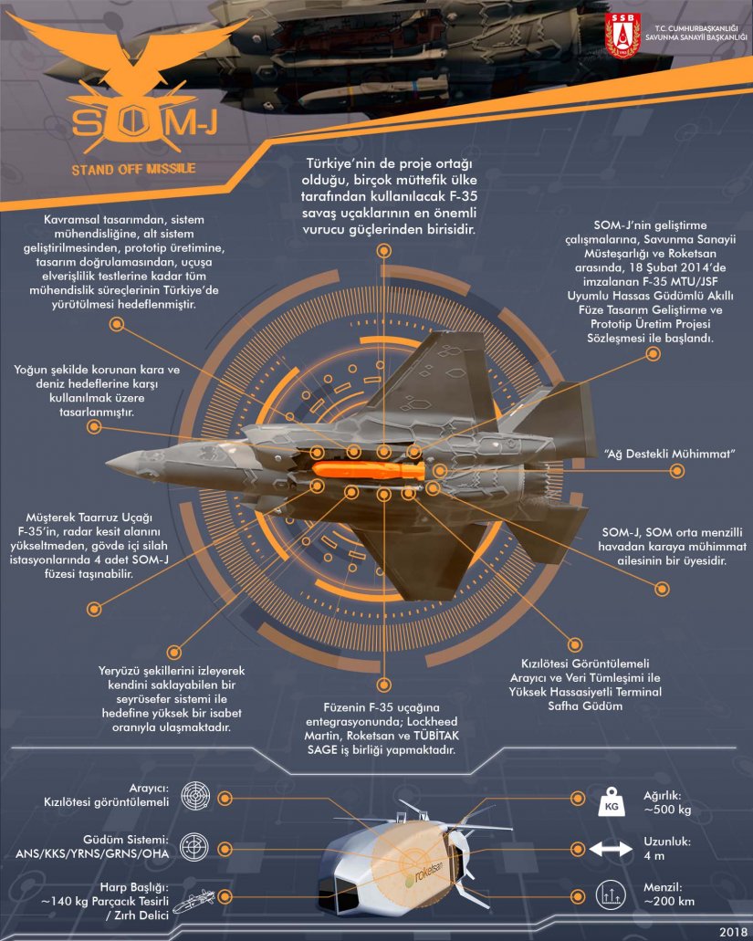 H συμφωνία της Lockheed Martin με την τουρκική εταιρεία Roketsan για την δημιουργία του όπλου υποστρατηγικού πλήγματος SOM-J είναι από τις σημαντικότερες που έχουν γίνει και που αφορούν τον εξοπλισμό των τουρκικών F-35.