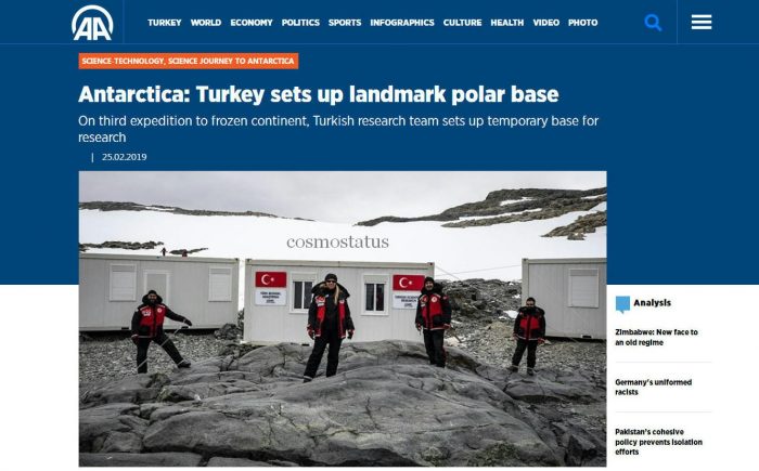 H Τουρκία εγκαθιστά βάση στην Ανταρκτική, δηλώνοντας στην παγκόσμια επιστημονική κοινότητα πως είναι παρούσα.